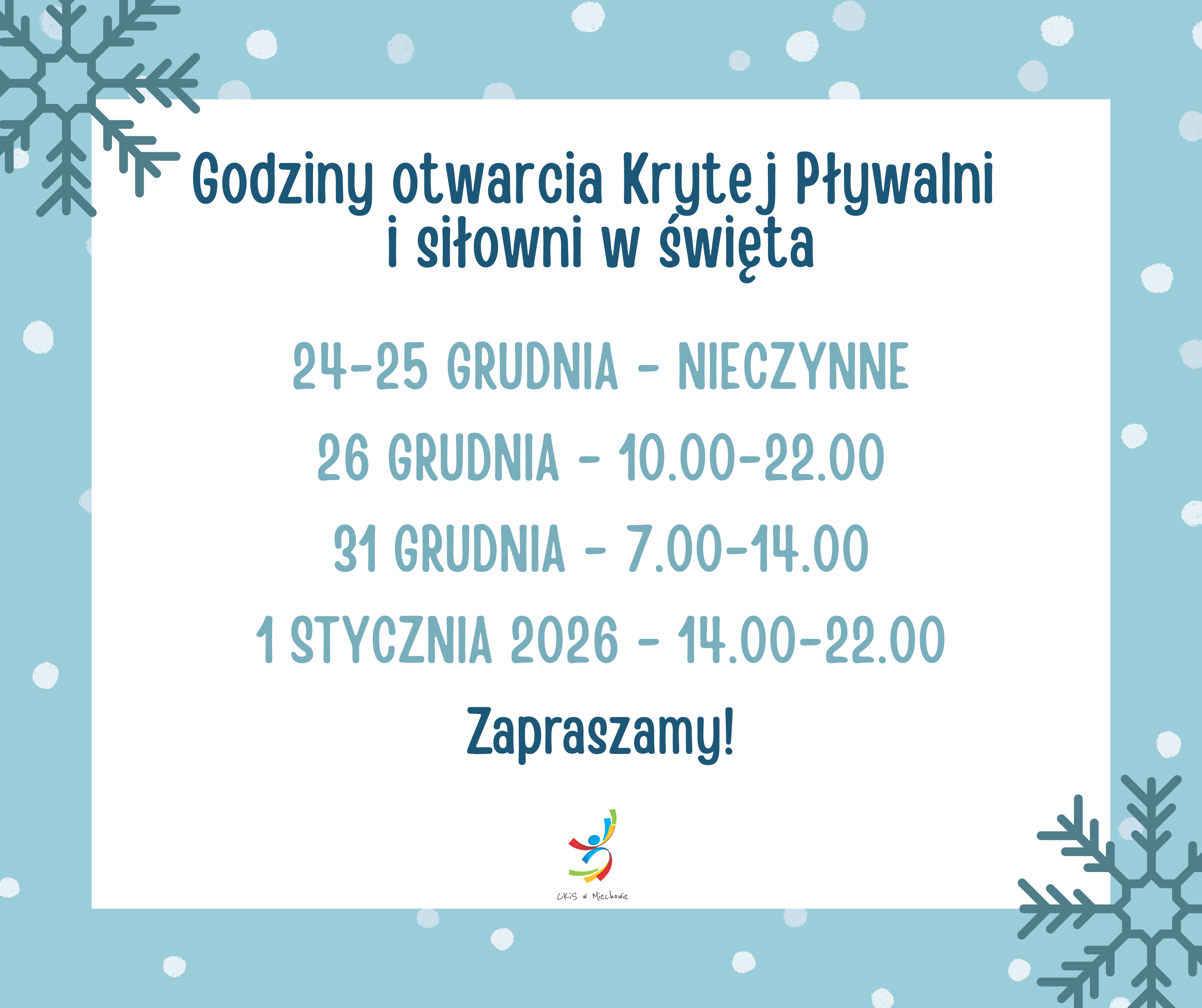 poniedziałek, 22 grudnia 2025 Ważna informacja! Zajęcia fitness i aguafitness w okresie świątecznym się nie odbędą!