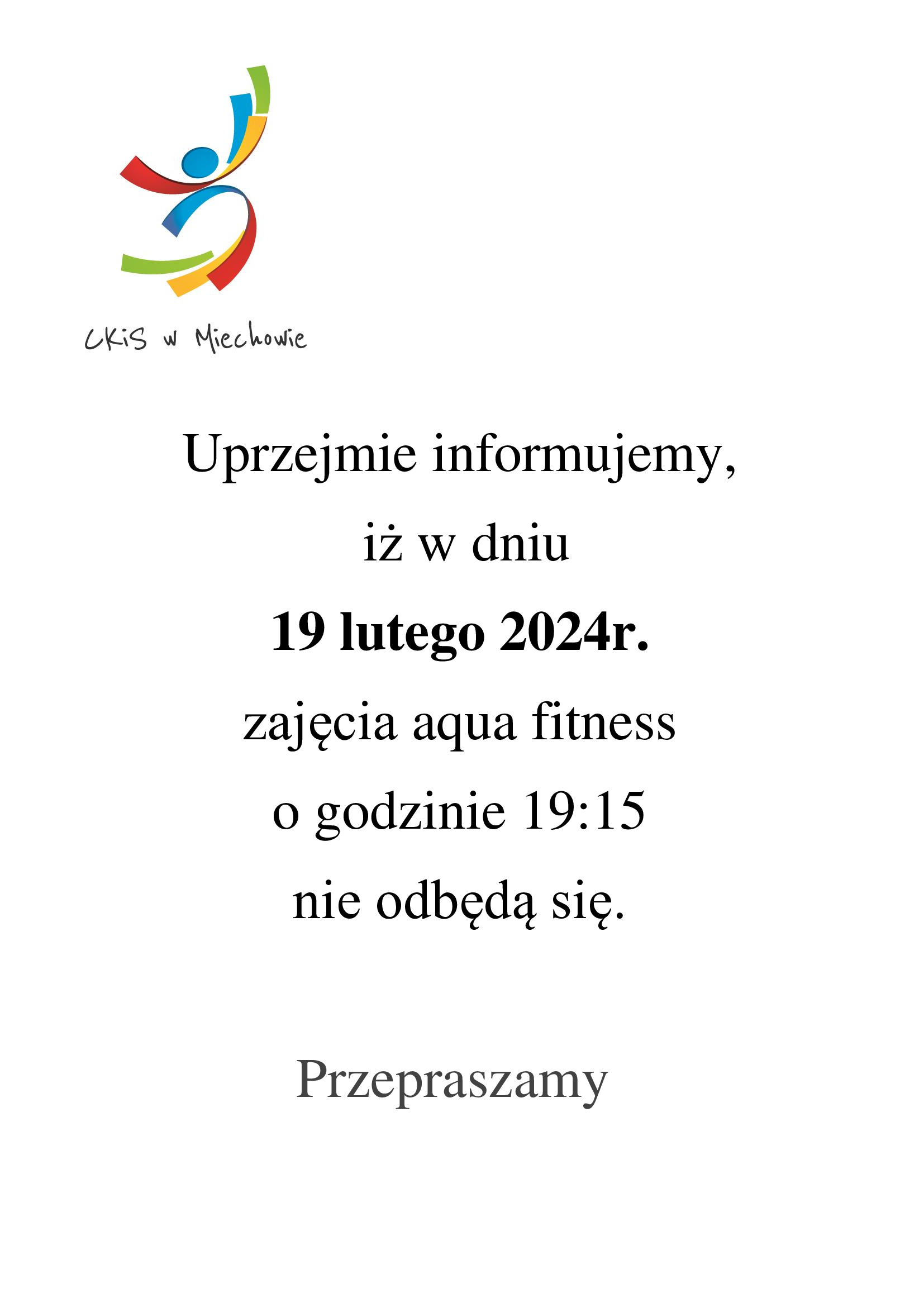 Aqua fitness odwołany - 19 lutego