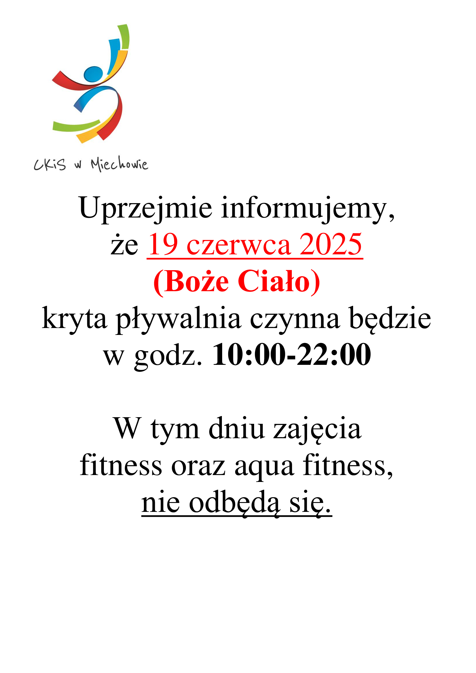 Godziny otwarcia w dniu 19.06.2025