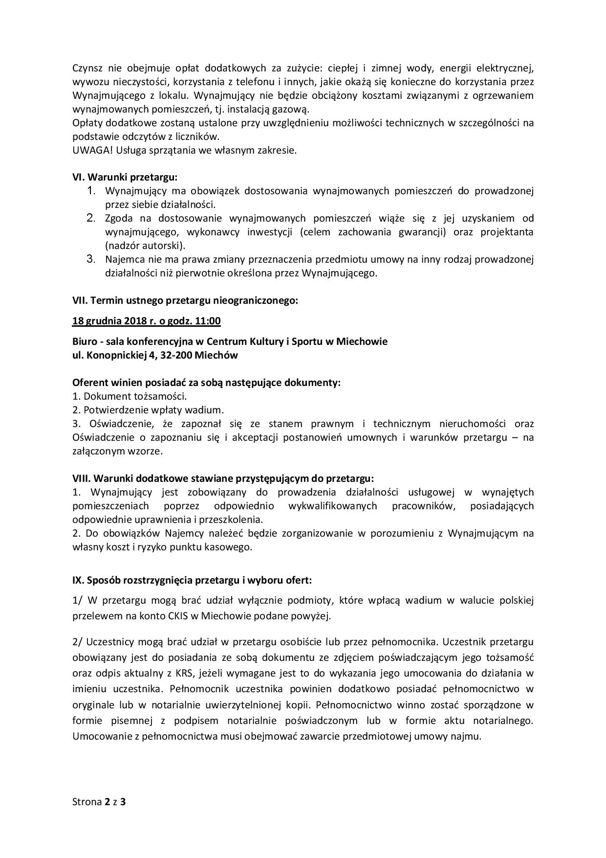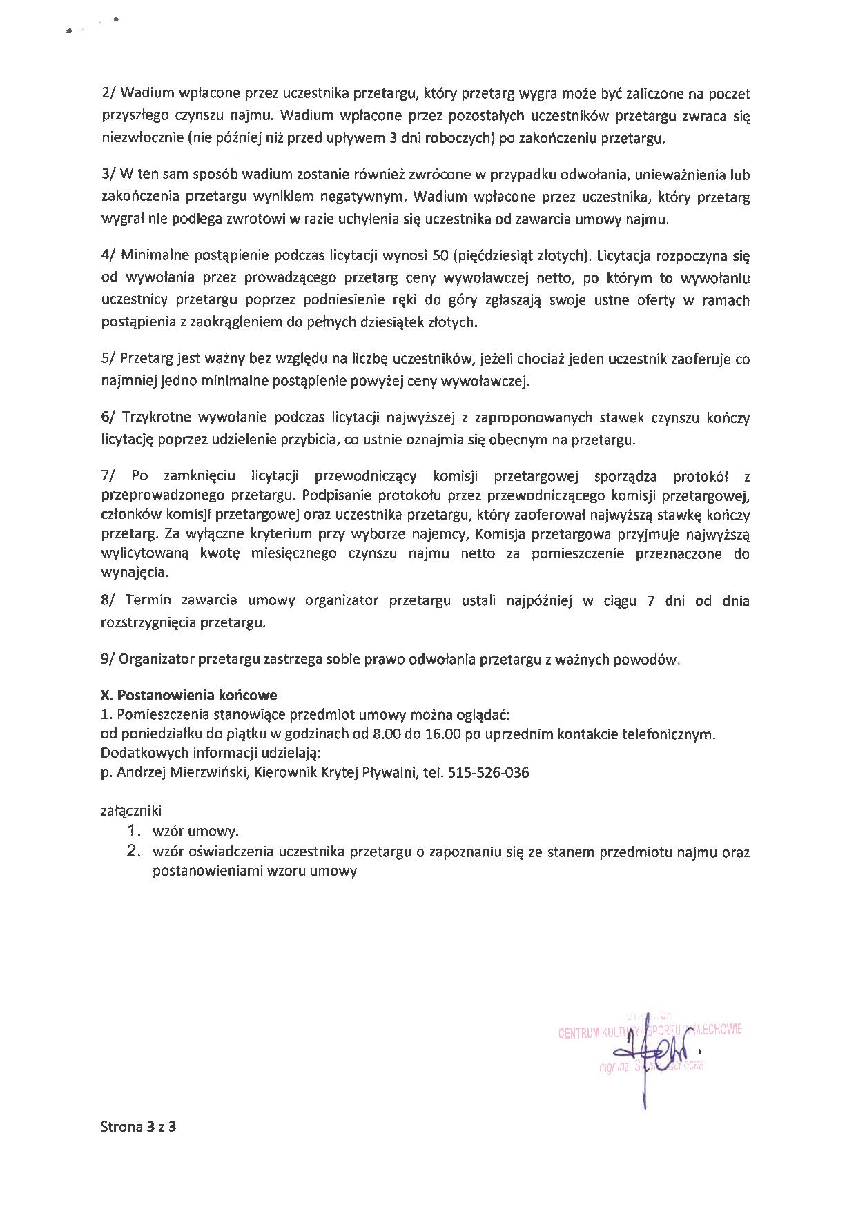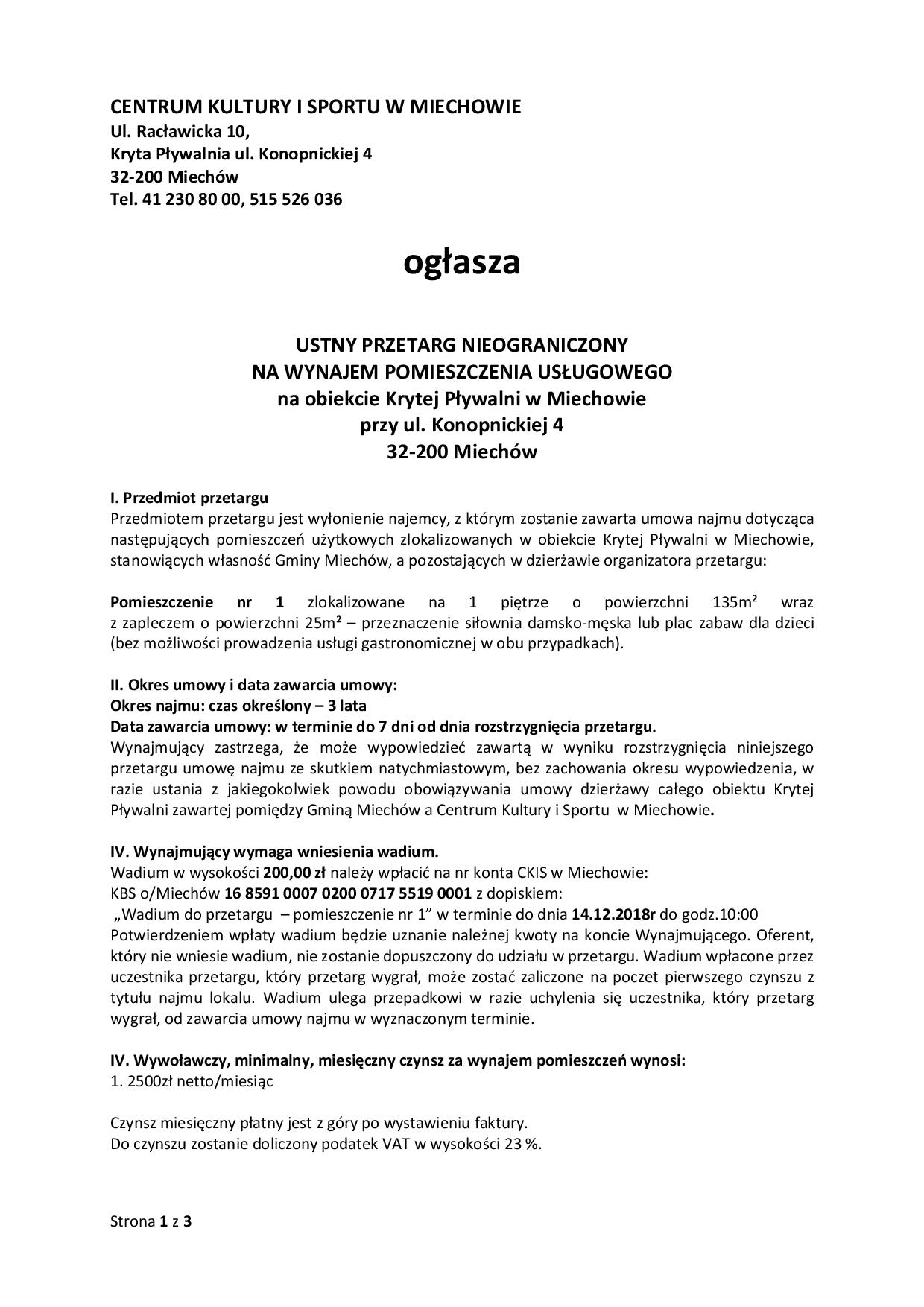 Ustny przetarg nieograniczony na wynajem pomieszczenia usługowego na obiekcie krytej pływalni