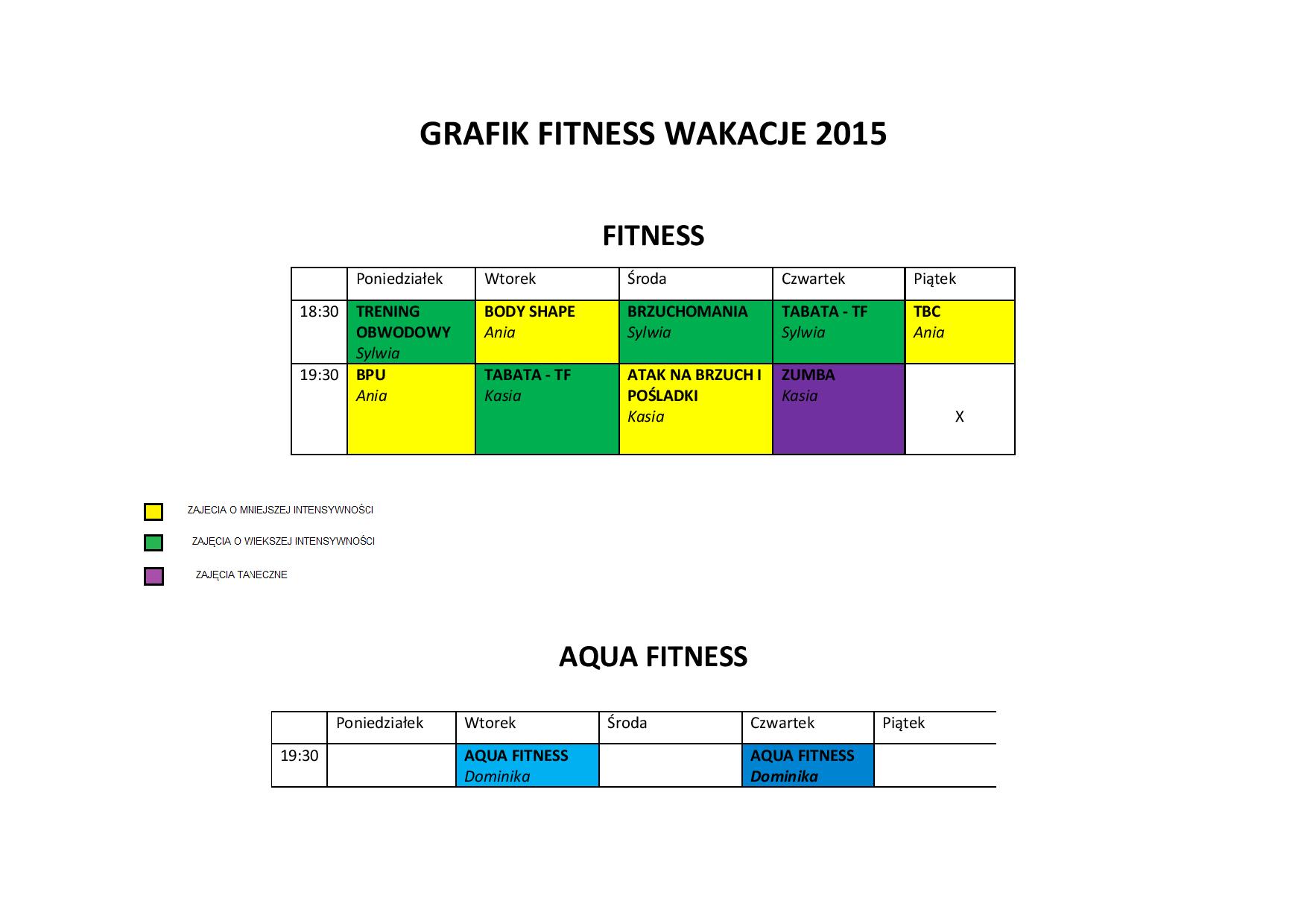 Zaprszamy do zapoznania się z nowym grafikiem fitness, który obowiązuje od 1 lipca przez cały okres wakacji.