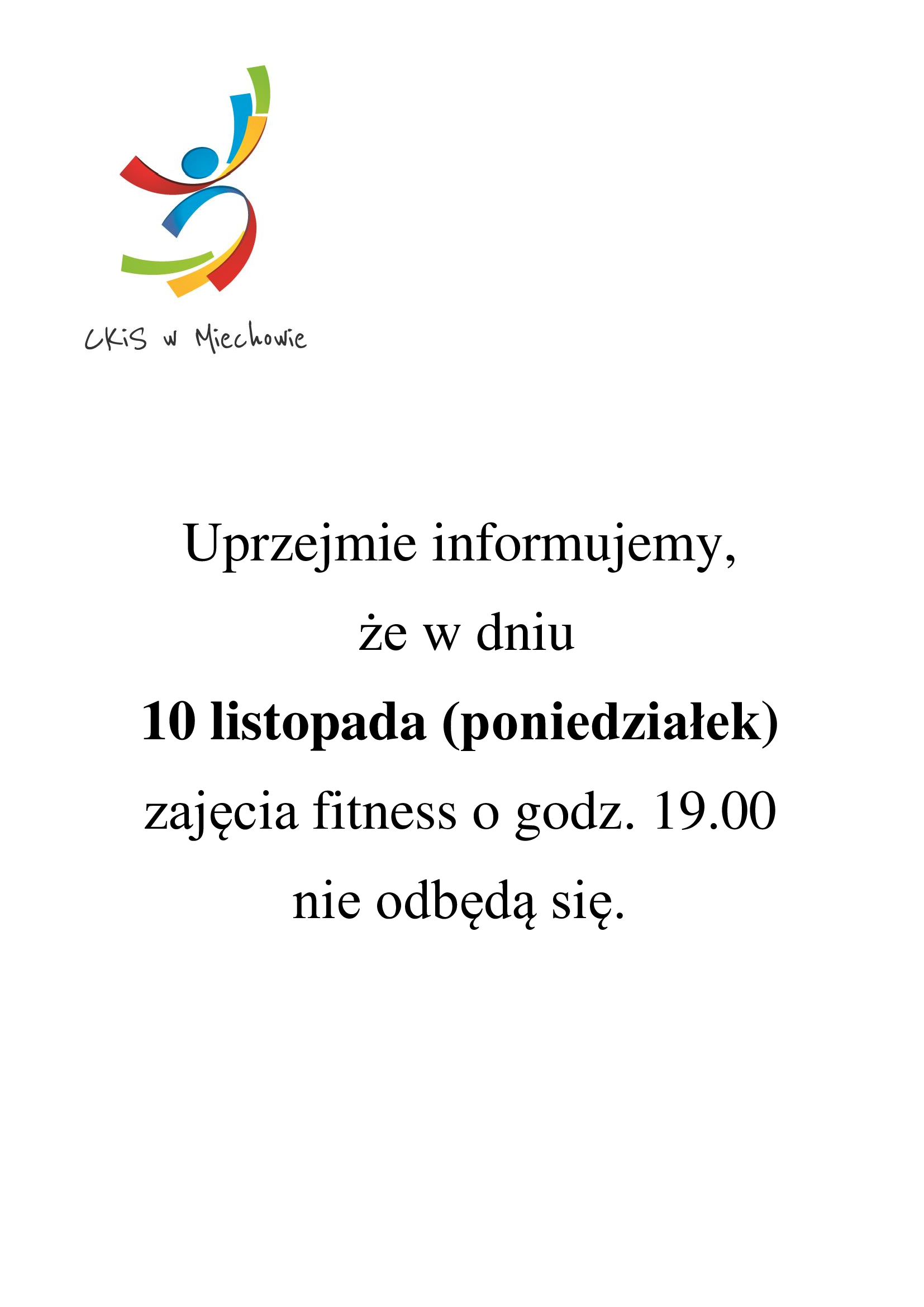 Zajęcia fitness odwołane - 10.11.