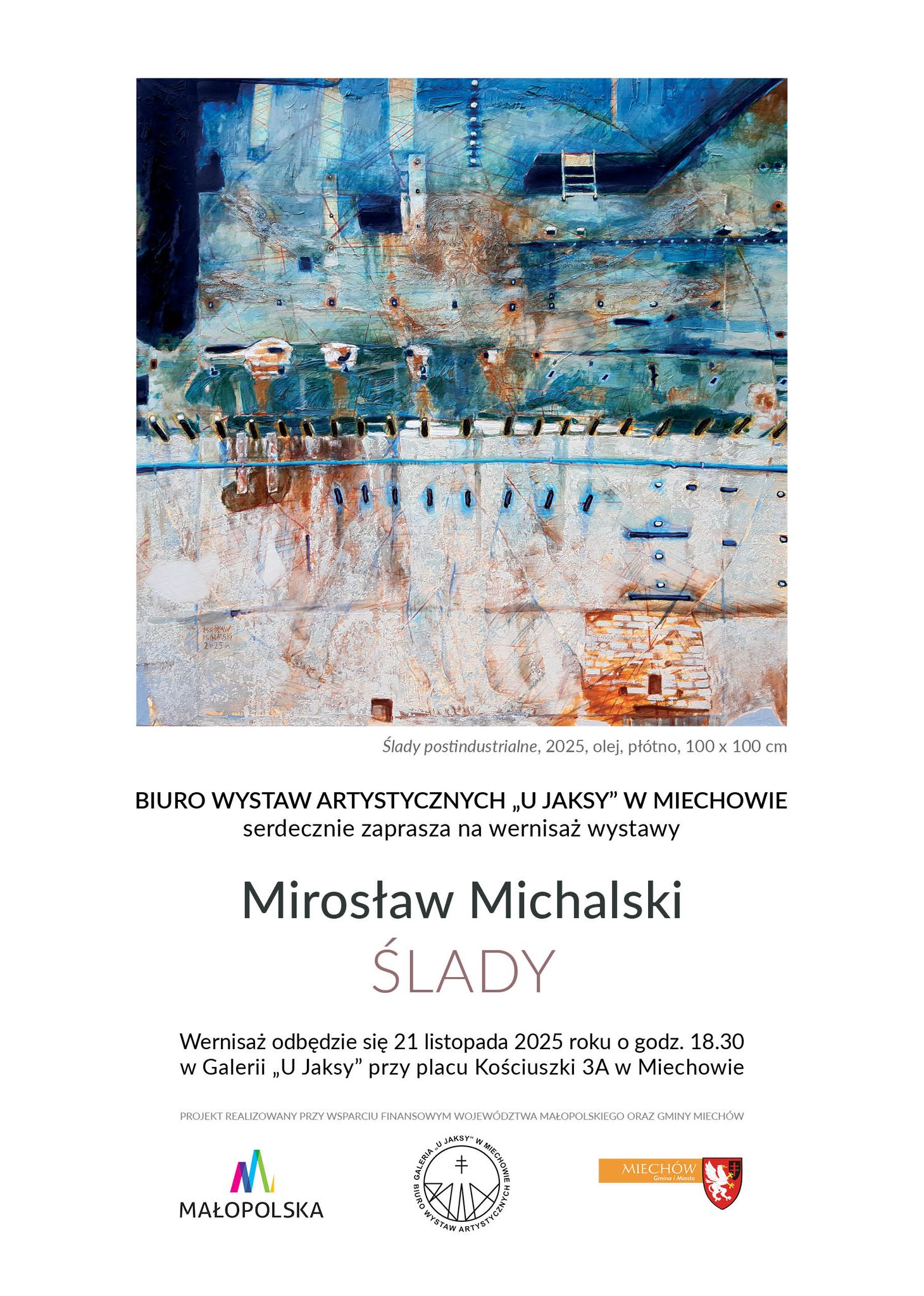 BIURO WYSTAW ARTYSTYCZNYCH „U JAKSY” W MIECHOWIE serdecznie zaprasza na wernisaż wystawy Mirosław Michalski "ŚLADY".